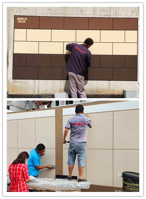 新佳帶起一起去現(xiàn)場(chǎng)觀看我們的師傅現(xiàn)場(chǎng)制作的真石漆樣板圖。